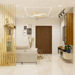 For a modern and sleek look, glass partitions with black or gold metal frames are ideal. They allow natural light to pass through while giving interiors an industrial, contemporary touch. These are especially popular in Hyderabad apartments where maximising light is a priority.